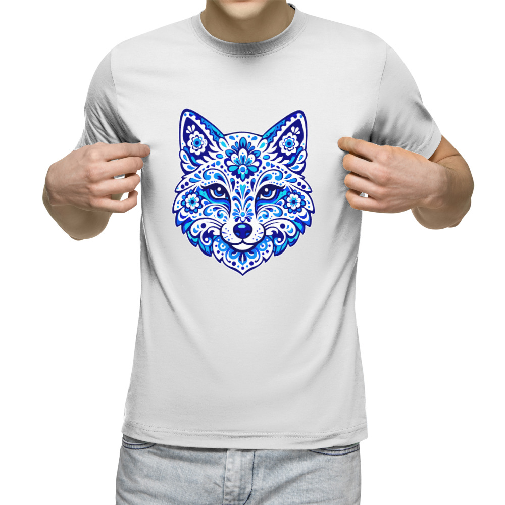 Мужская футболка «Русский узор гжель-лиса в гжельской росписи»