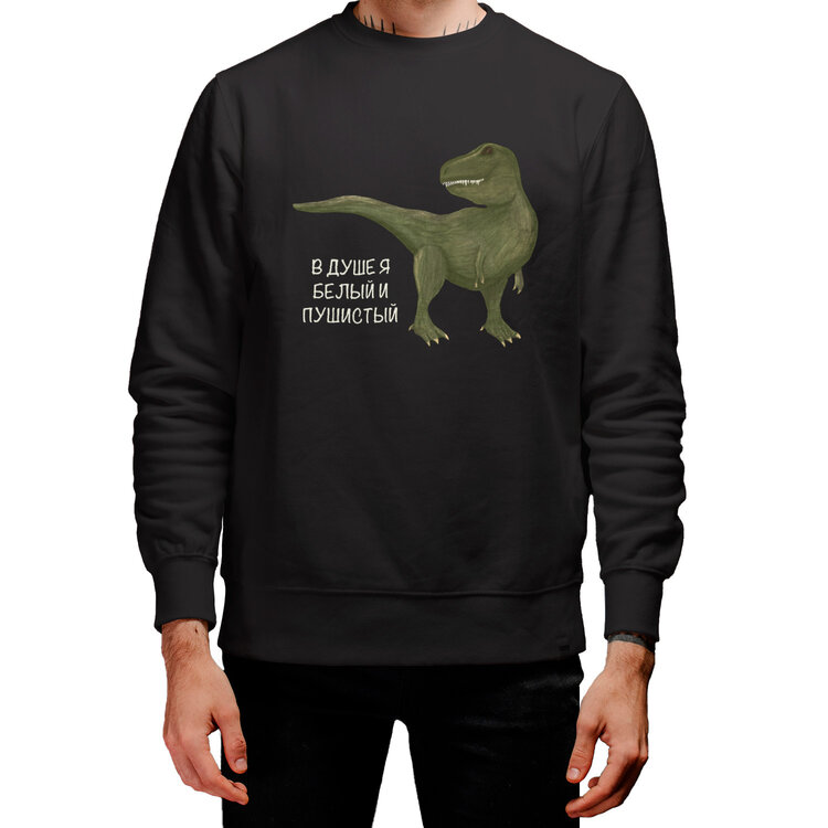 Мужская толстовка «Динозавр с надписью В душе я белый и пушистый»