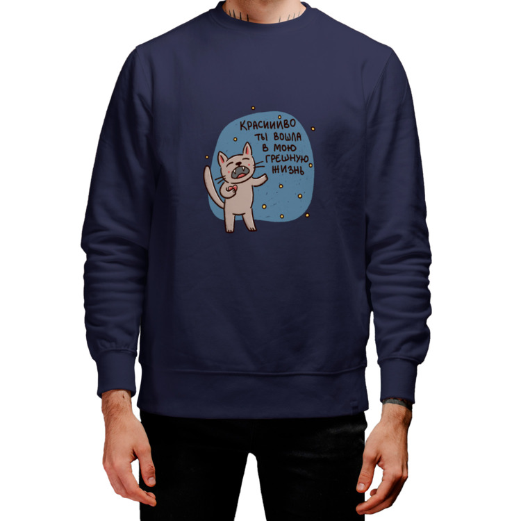 Мужской свитшот «Кот поёт серенаду. Надпись. Юмор. Мем. Цитата»