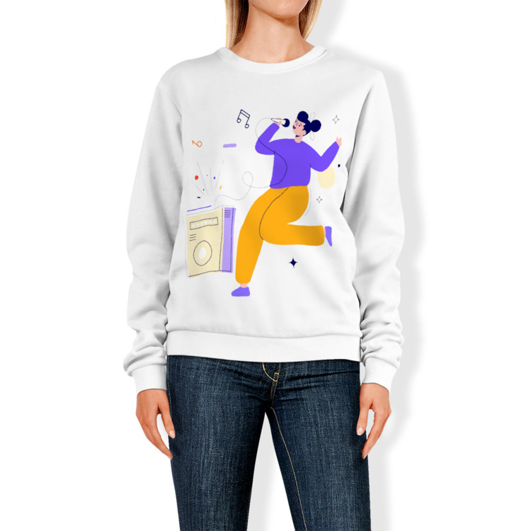 Женский свитшот «Девушка поёт и танцует у музыкального центра»