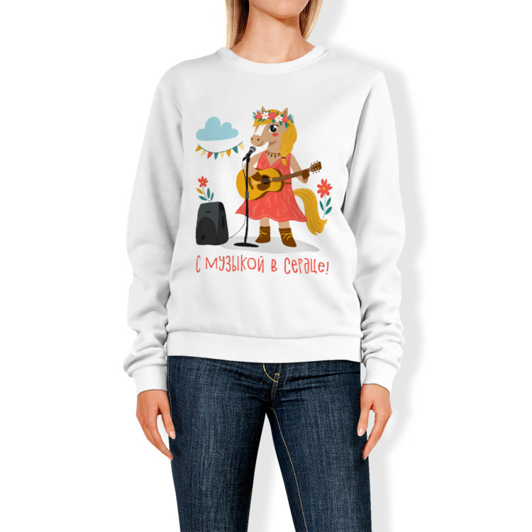 Женский свитшот «Лошадка - музыкант - С музыкой в сердце!»