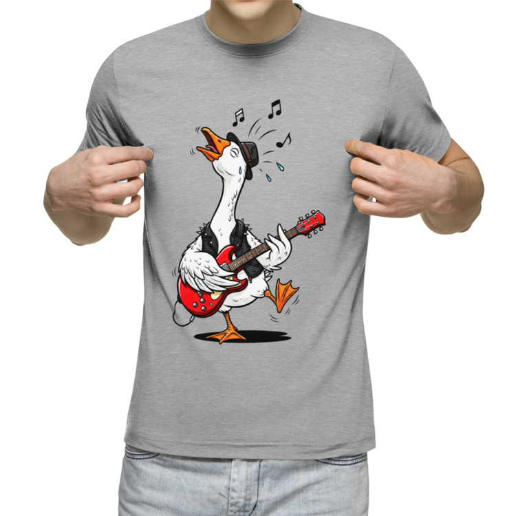 Мужская футболка «Гусь гитарист в шляпе. Принт для музыканта»