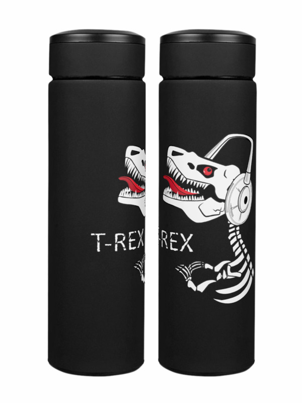 Термос «Скелет тираннозавра слушает музыку а наушниках»
