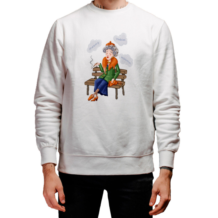 Мужской свитшот «смешная бабуля с мехом в бигудях»