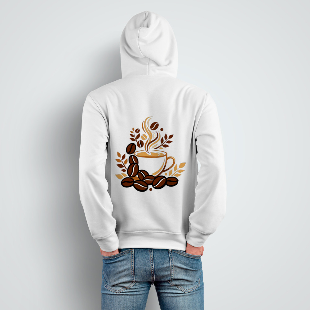 Мужская толстовка «Ароматная кофейная чашка с зёрнами и листьями»