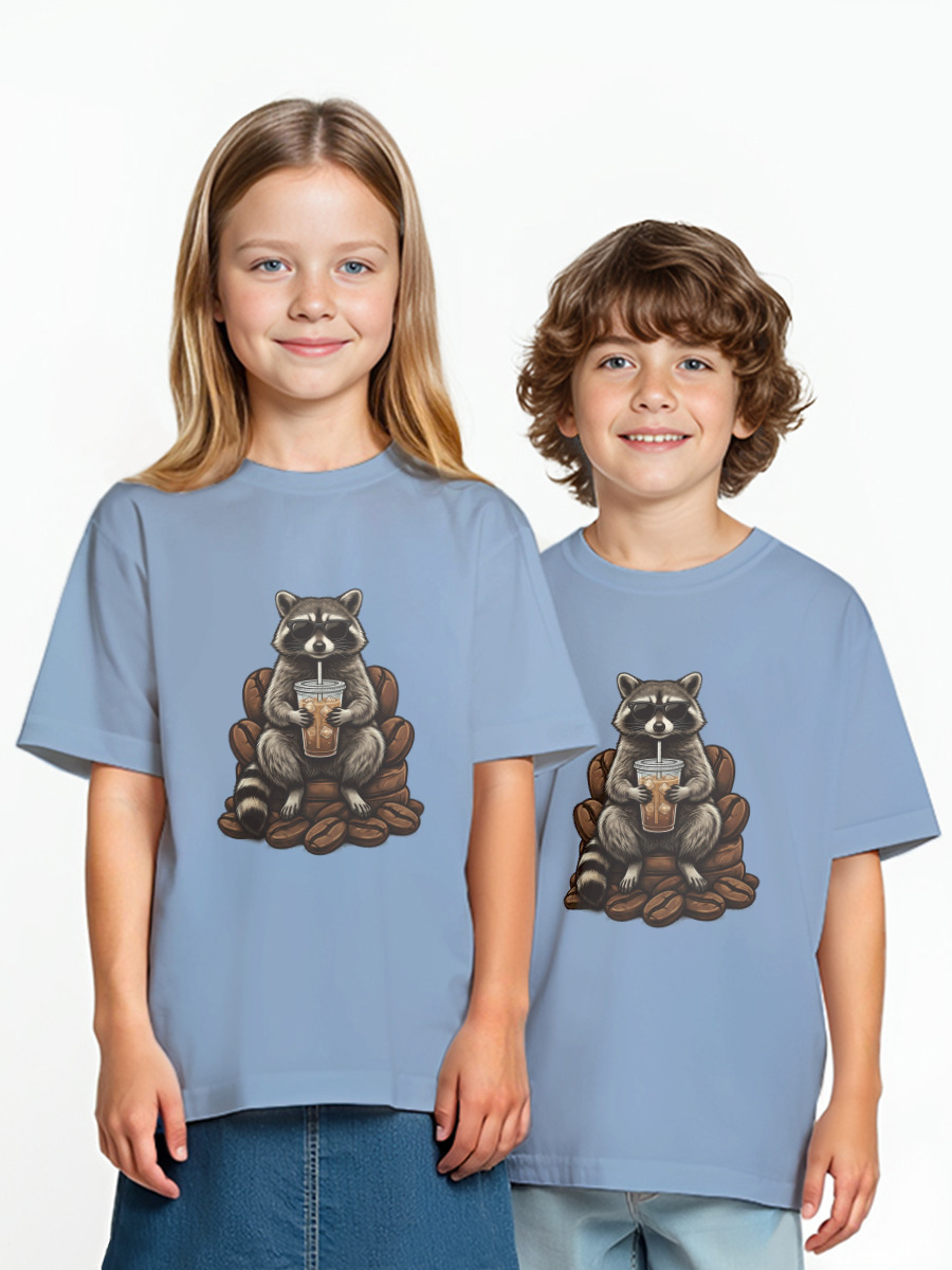 Детская оверсайз футболка «Кофейный енот в очках»