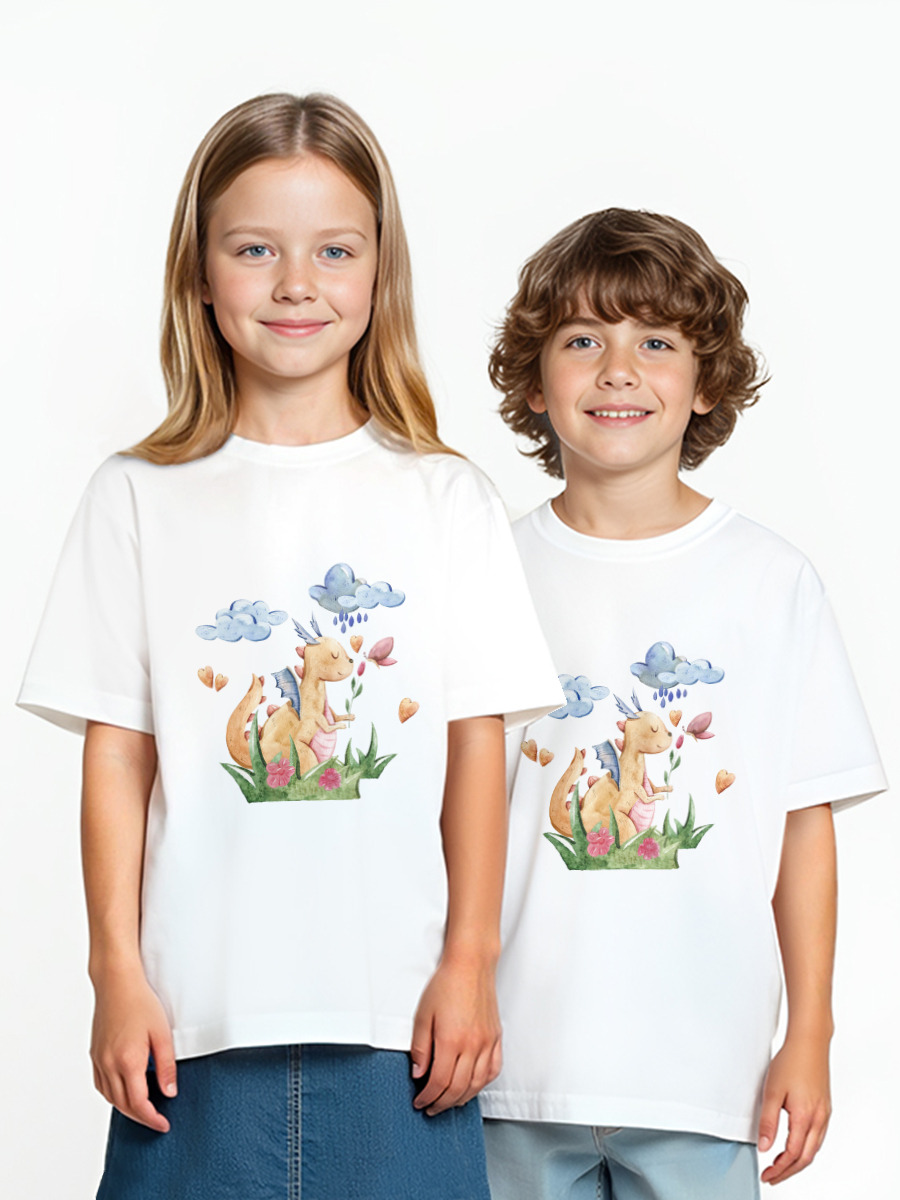 Детская оверсайз футболка «Милый дракон и бабочка акварель»