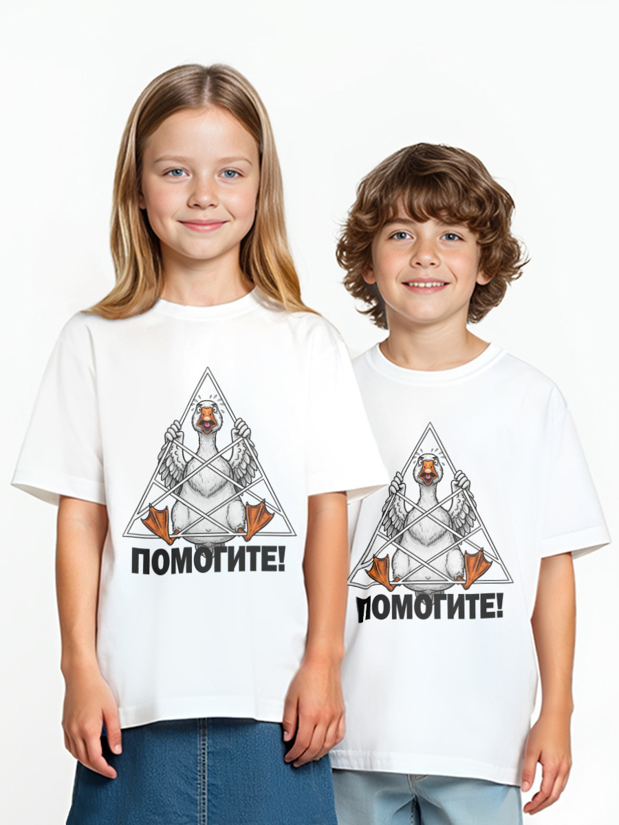 Детская оверсайз футболка «Испуганный гусь кричит ПОМОГИТЕ»