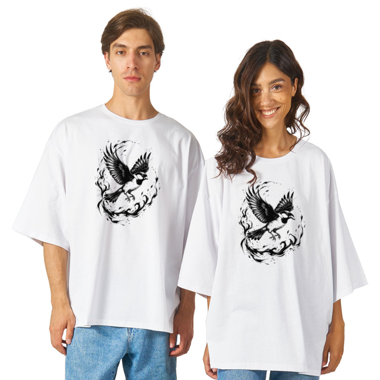 Футболка оверсайз «Снегирь в огненном вихре»
