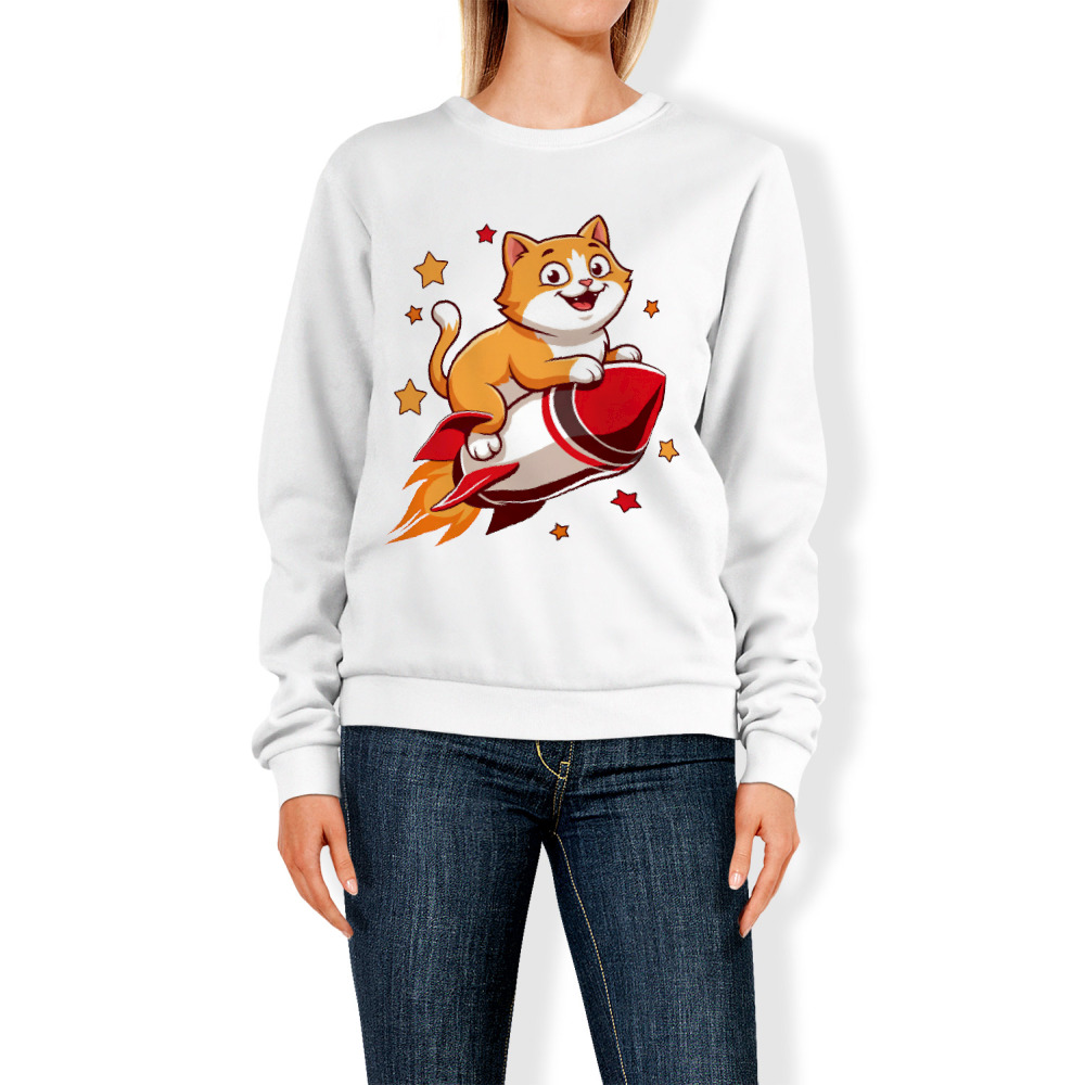 Женский свитшот «Кот на ракете. Полет в космос. Космонавт»