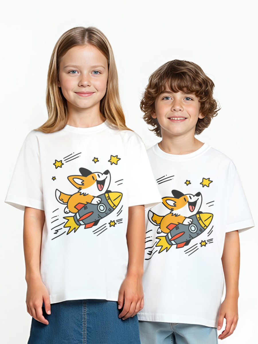 Детская оверсайз футболка «Космонавт корги на ракете. Смешной щенок, песик»