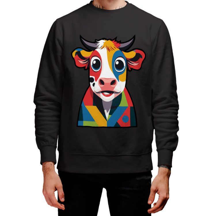 Мужской свитшот «Бык. Голова. Полигональная фигура. Черный»