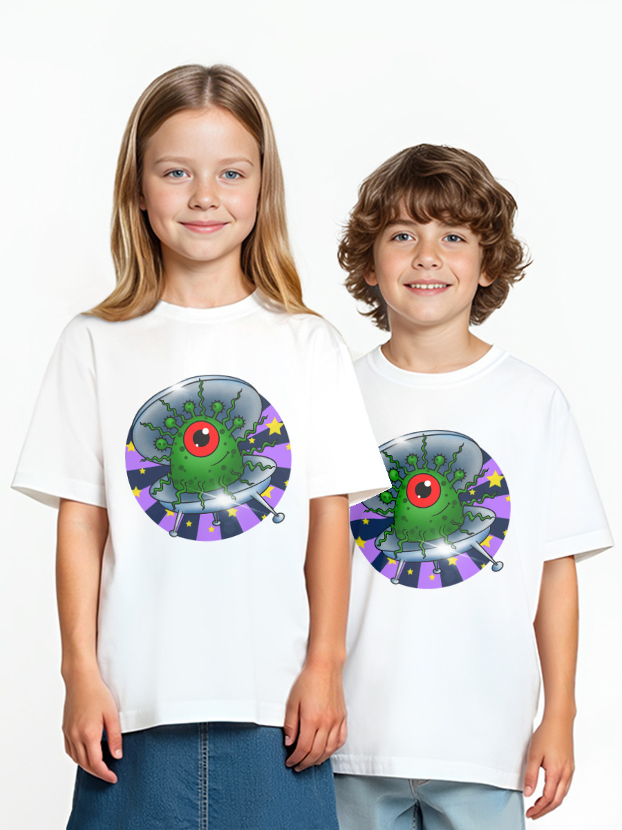Детская оверсайз футболка «Инопланетянин в летающей тарелке»