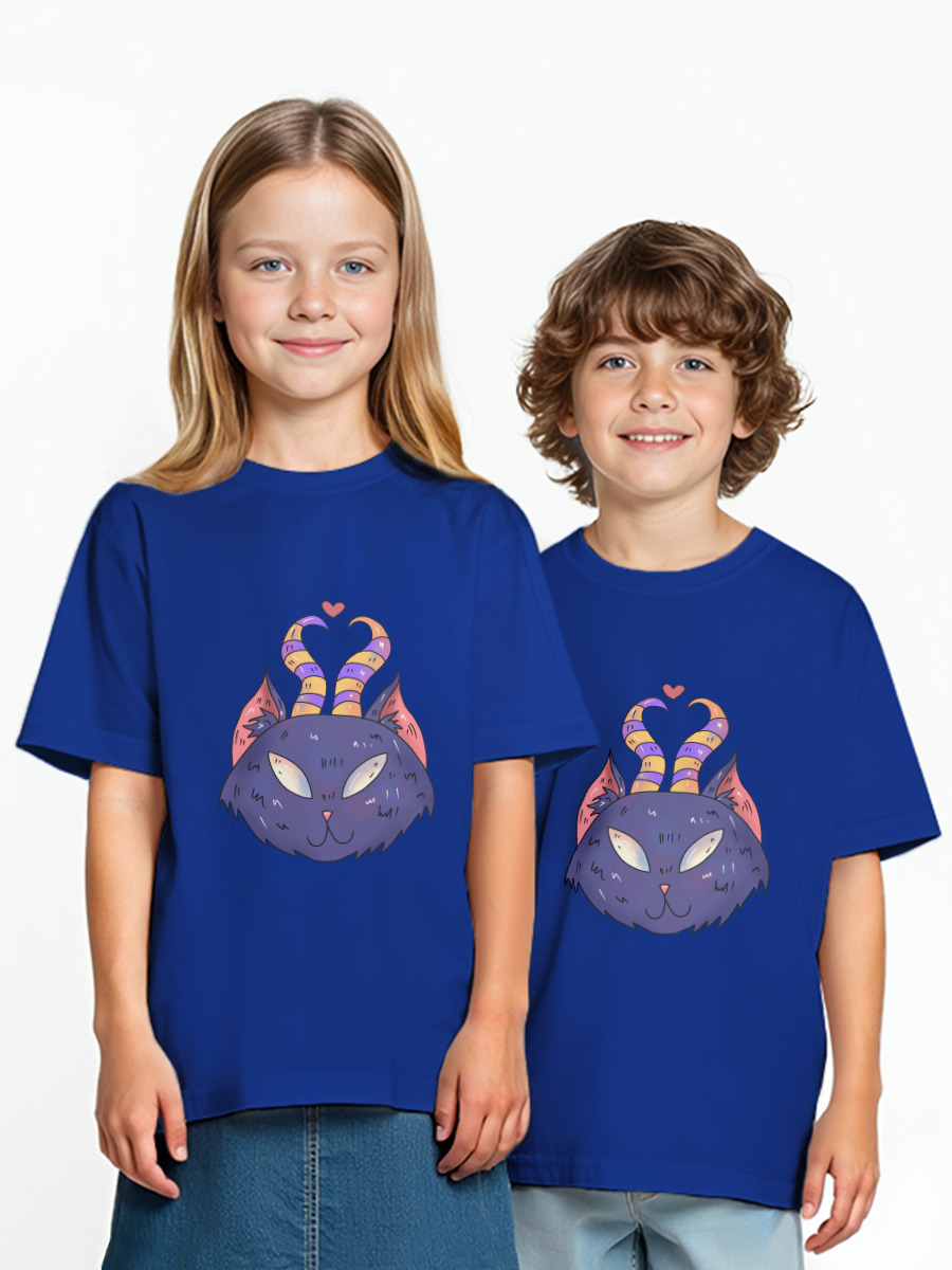 Детская оверсайз футболка «Котик с рожками»