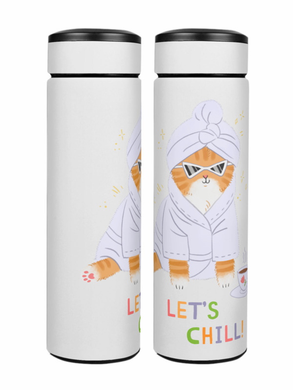 Термос «Милая кошечка в халате с кружкой чая»
