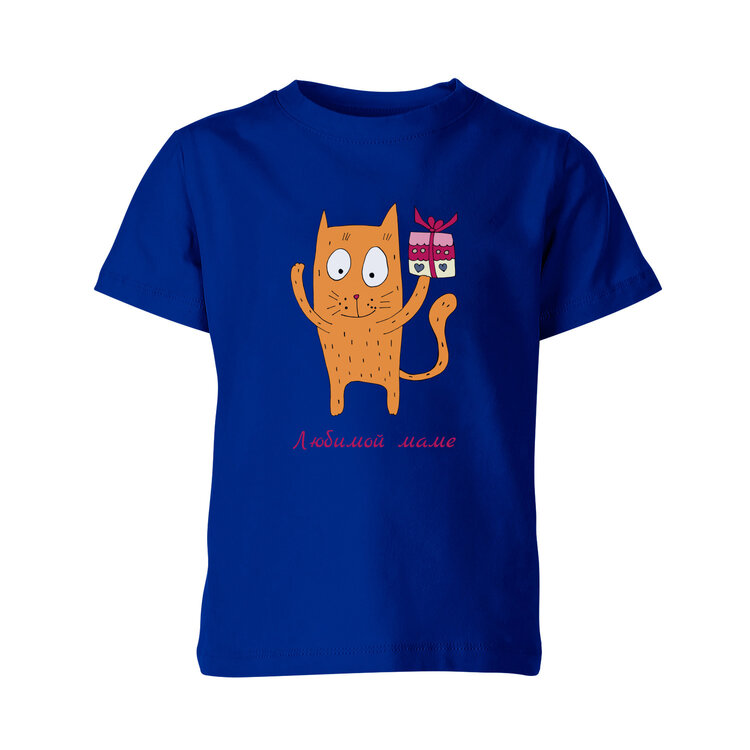 Детская футболка «Кот с подарком в руках»
