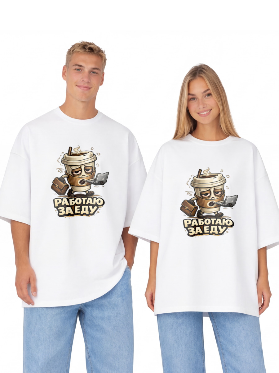 Футболка оверсайз «Работаю за еду»