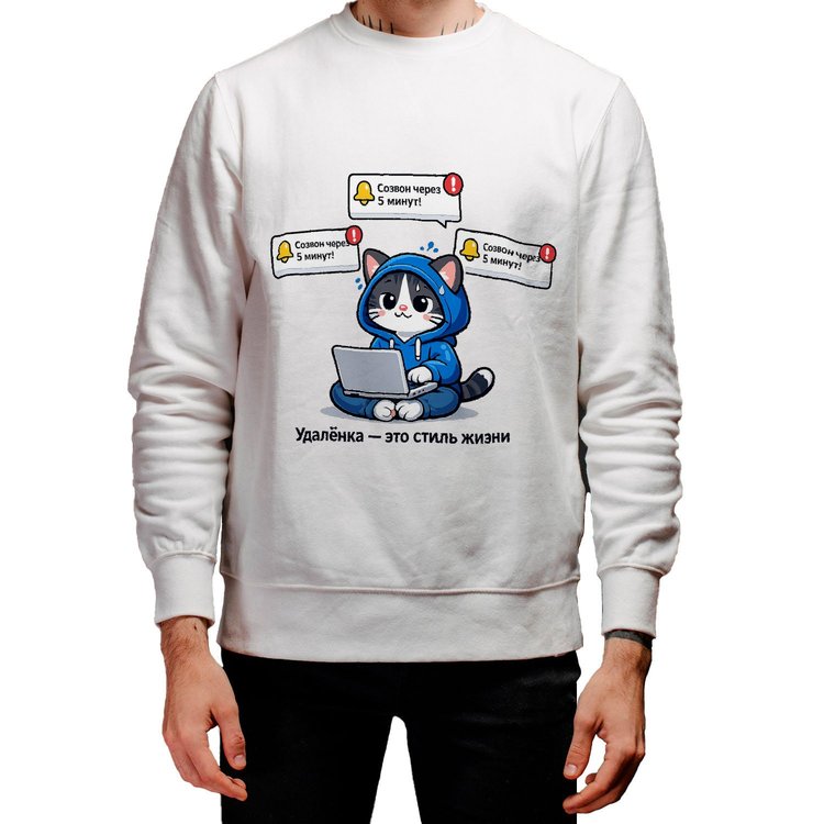 Мужской свитшот «Кот. Удаленка - это стиль жизни»