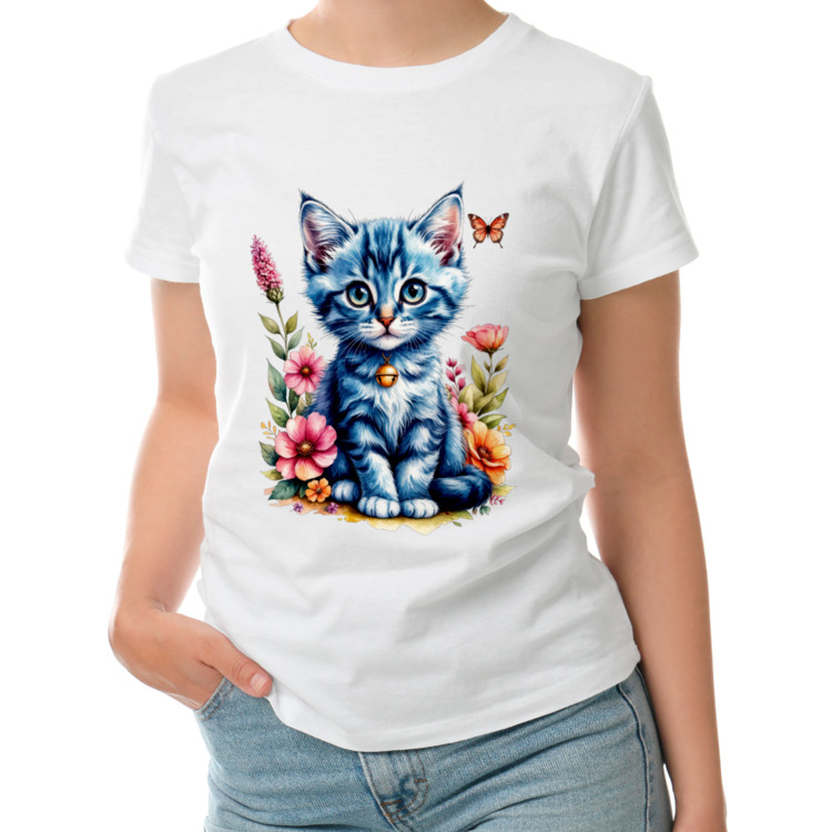Женская футболка «Котенок в цветах»