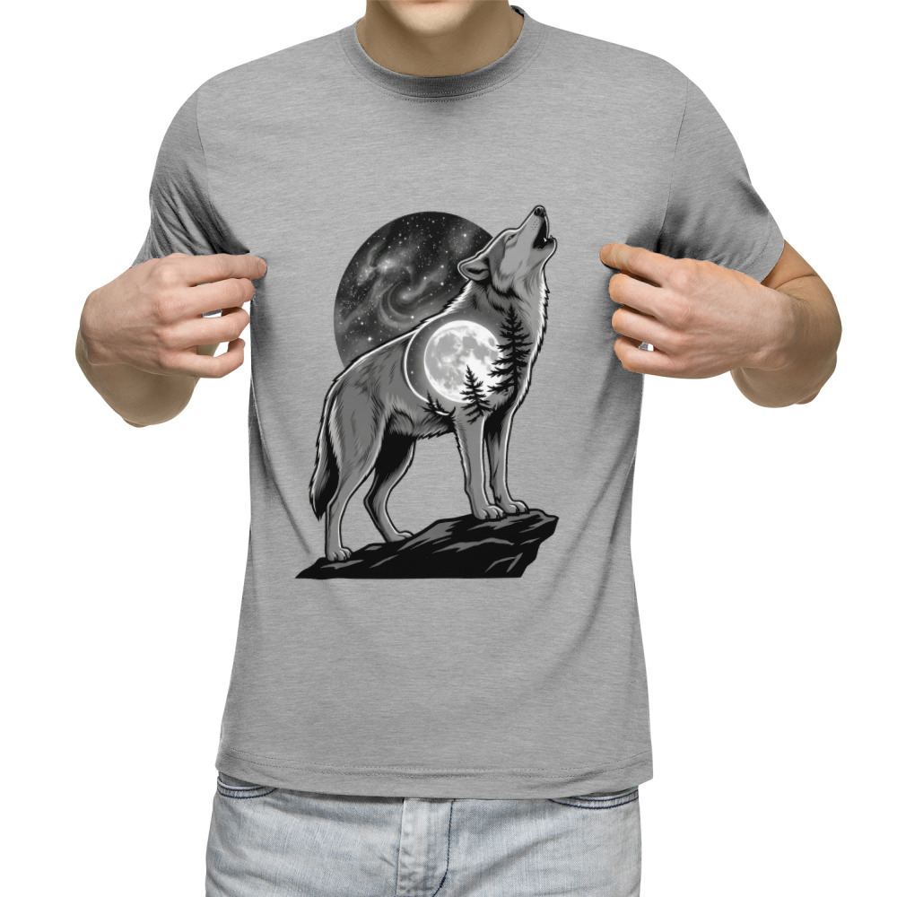 Мужская футболка «Волк воет на луну, одиночество»