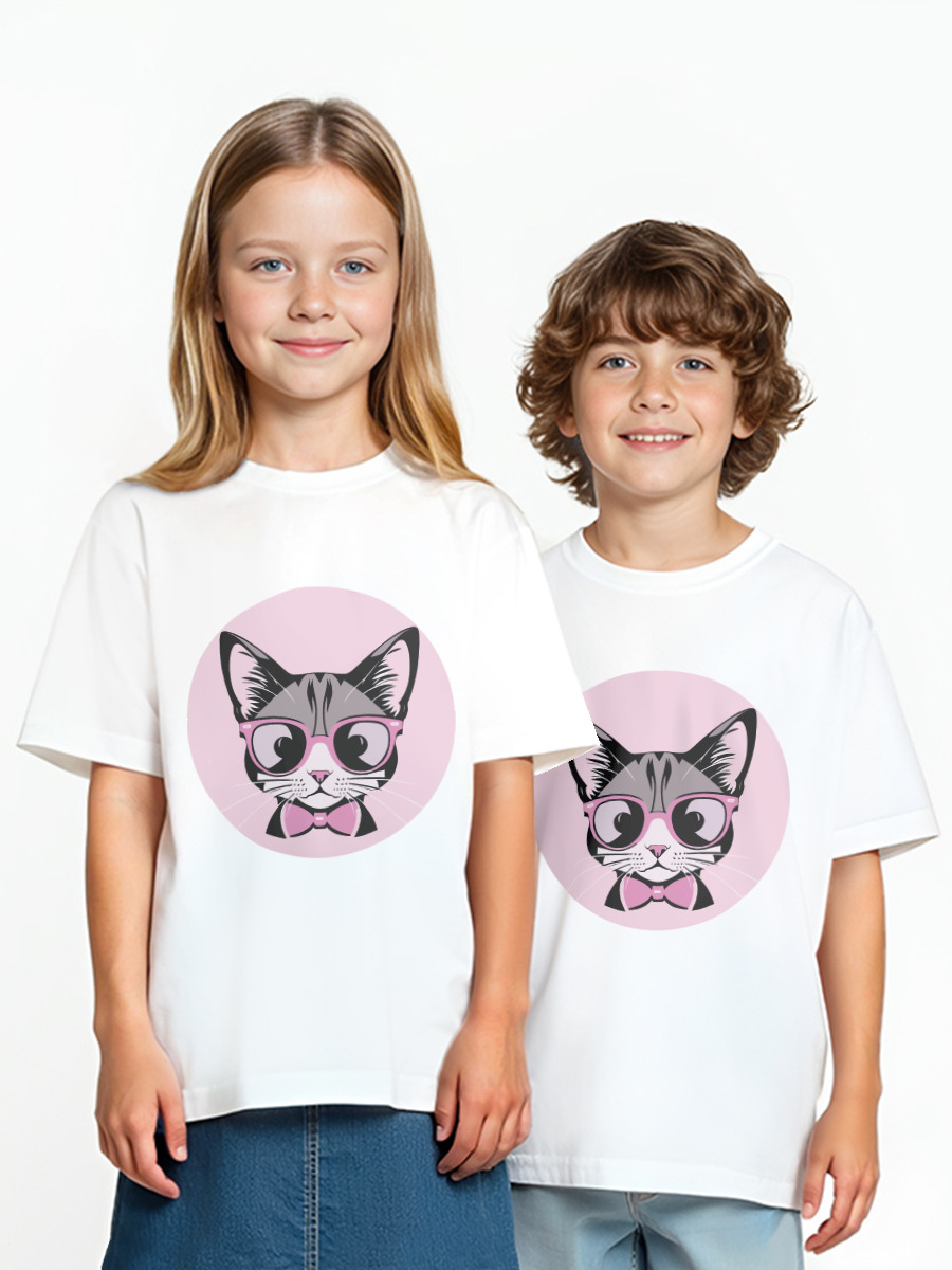 Детская оверсайз футболка «Котик в очках и бабочке»