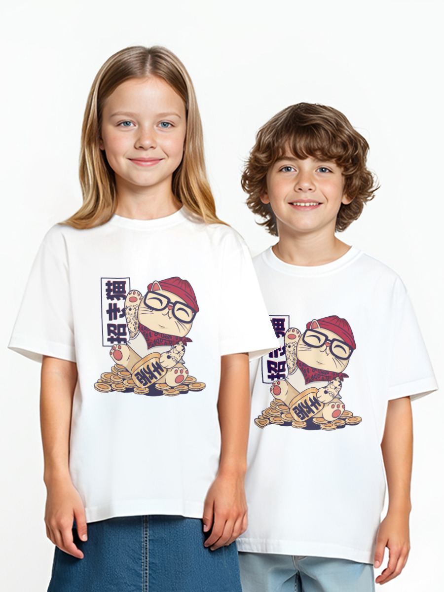 Детская оверсайз футболка «Крутой Денежный Неко Кот»