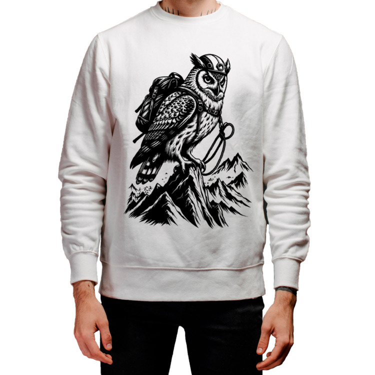 Мужской свитшот «Сова-альпинист на вершине»