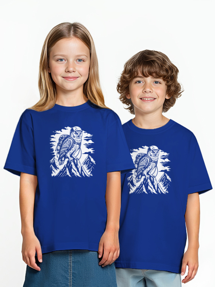 Детская оверсайз футболка «Сова-альпинист на вершине»