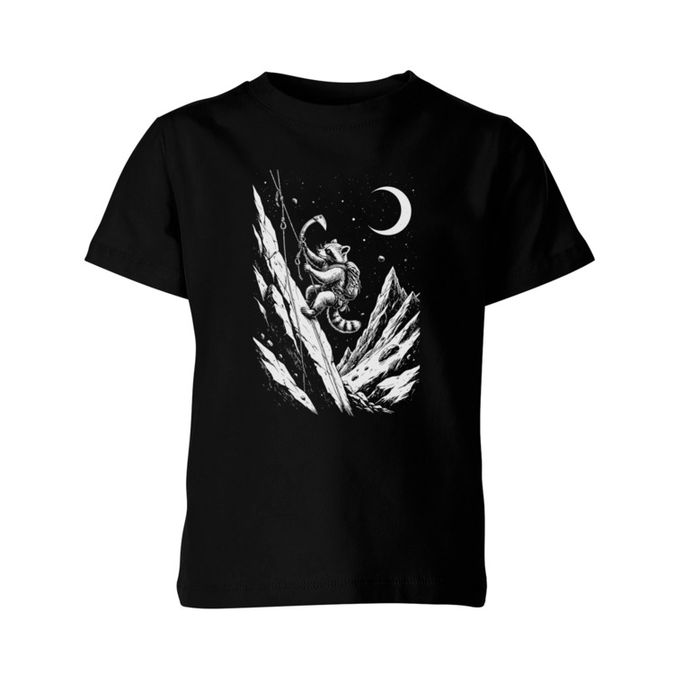 Детская футболка «Енот-альпинист покоряет вершины»
