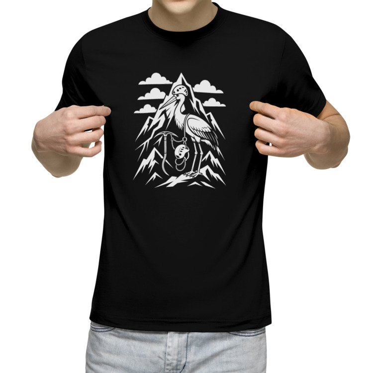 Мужская футболка «Аист-альпинист у вершин»