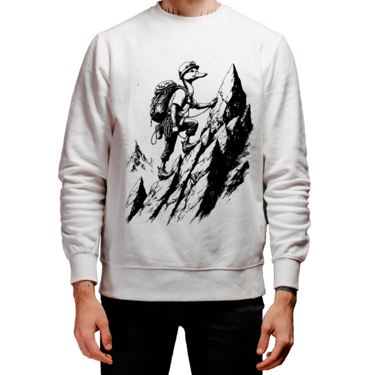 Мужской свитшот «Утка-альпинист штурмует скалы»