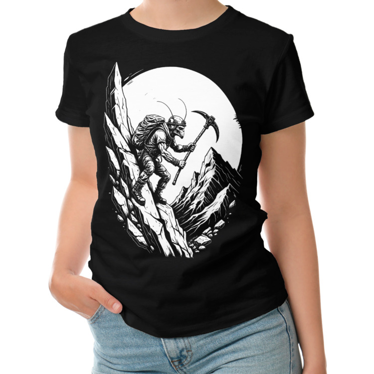 Женская футболка «Таракан-альпинист штурмует скалы»
