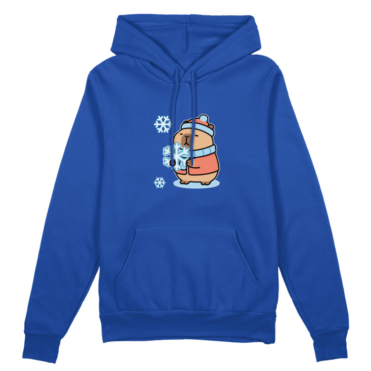 Мужской свитшот «Санки с милыми снеговиками и снежинками»