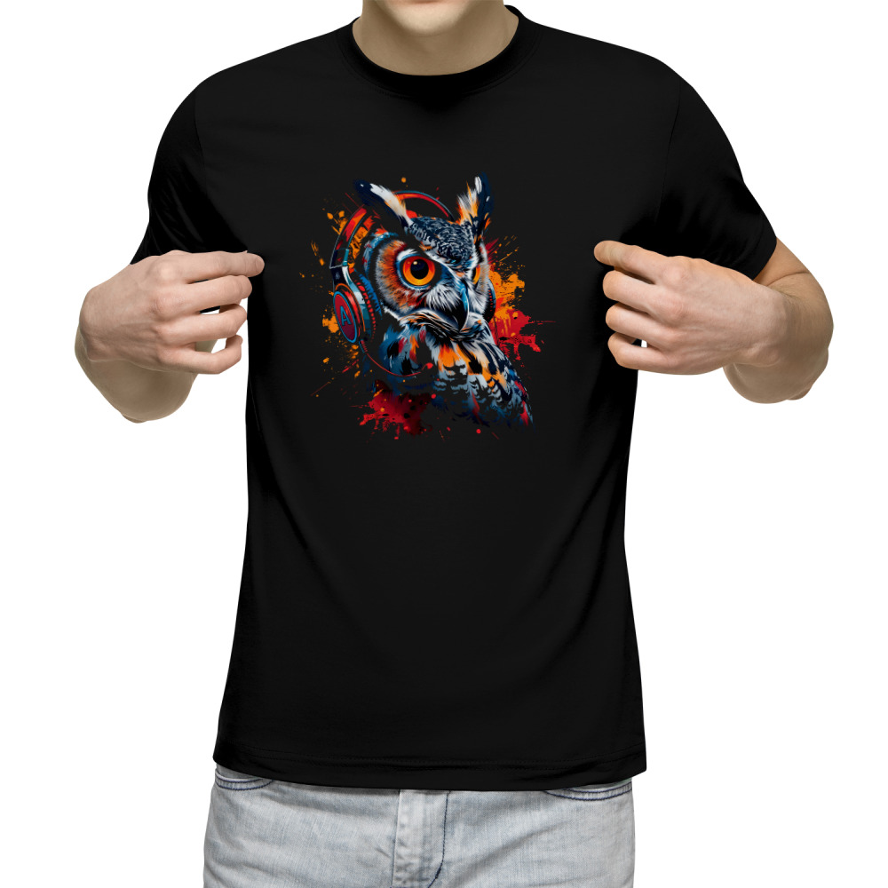 Мужская футболка «Филин в наушниках. Стрит-арт стиль»