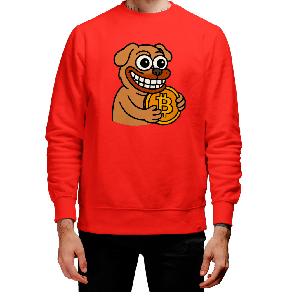 Мужской свитшот «Собака с монетой биткоин. Крипто-мем для трейдера»