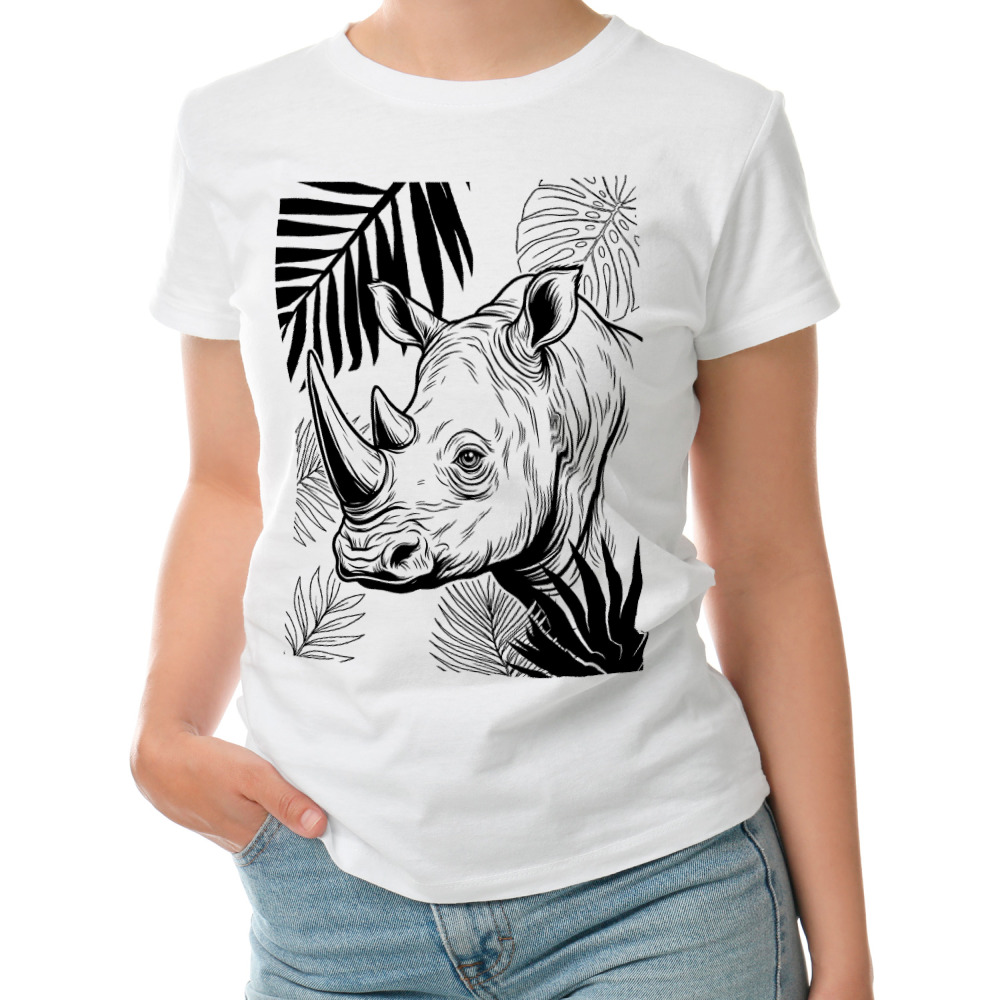 Женская футболка «Носорог среди тропических растений в монохроме.»