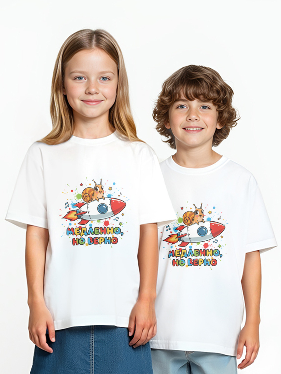 Детская оверсайз футболка «Улитка на ракете: Медленно, но уверенно к цели!»
