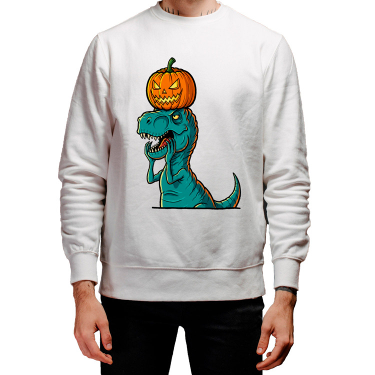 Мужской свитшот «Тираннозавр и лампа Джека»