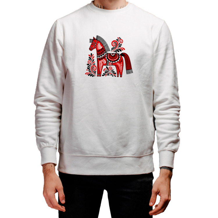 Мужской свитшот «Красная лошадь в стиле народной росписи»