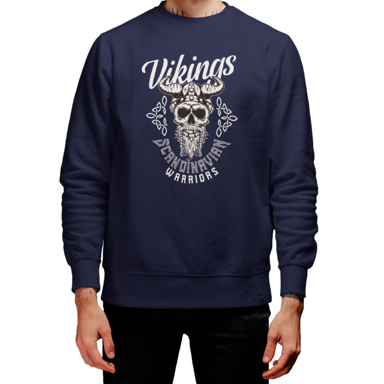 Мужской свитшот «Викинг череп.Скандинавский воин,скелет,valhalla»