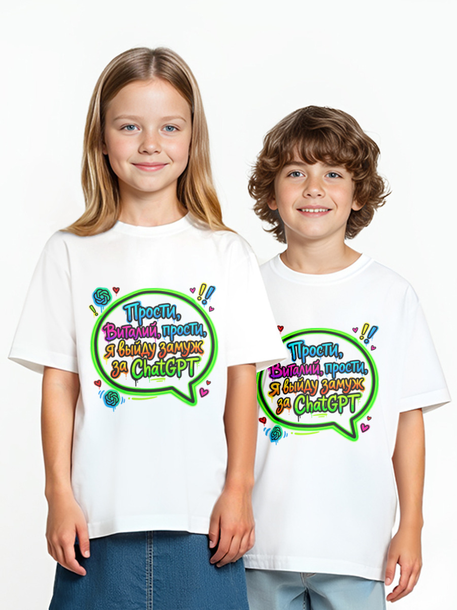 Детская оверсайз футболка «Прости, Виталий, прости. Я выйду замуж за ChatGPT»