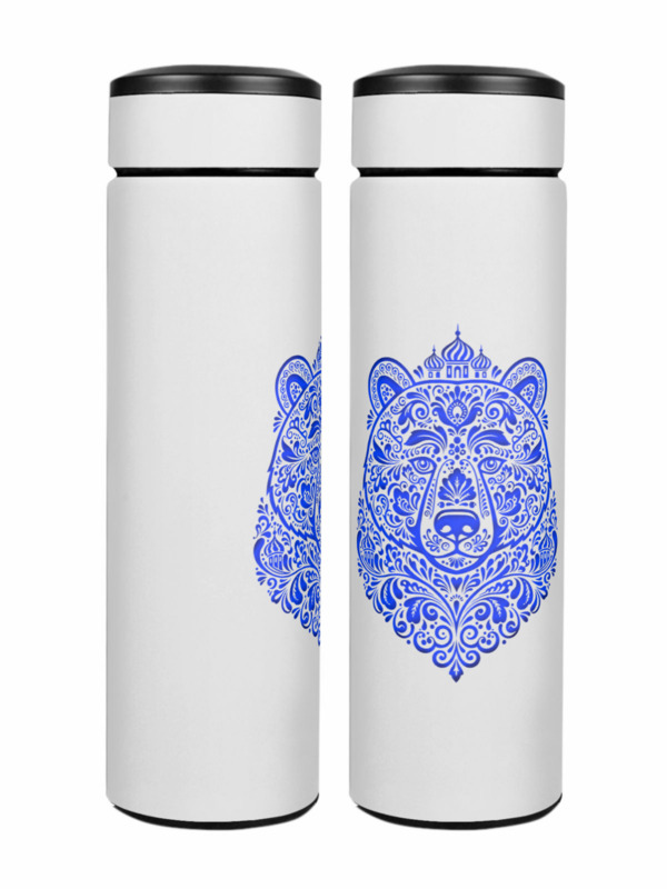 Термос «Русские узоры - медведь в стиле гжель с куполами»