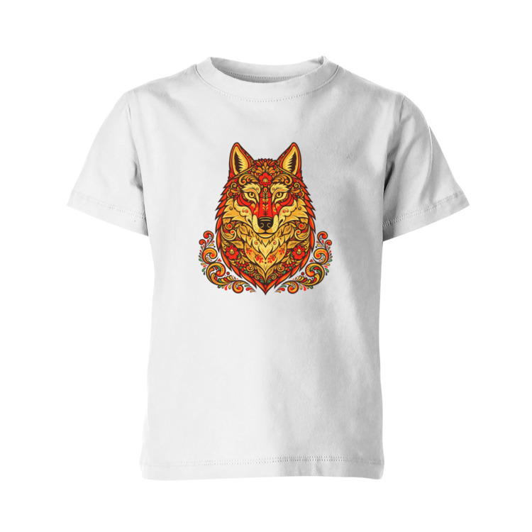 Детская футболка «Русский стиль - волк в народных узорах хохломы»