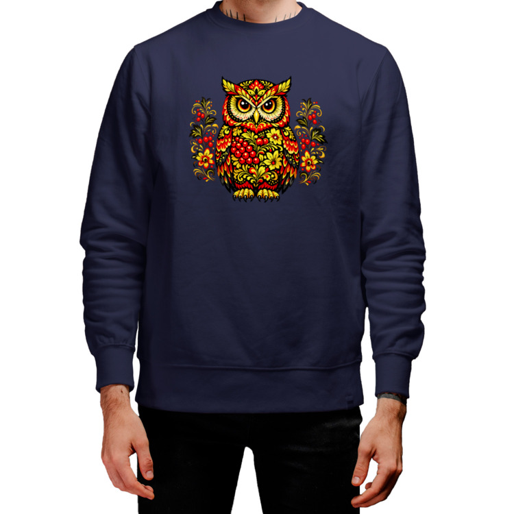 Мужской свитшот «Узор хохлома - сова хохломская роспись»