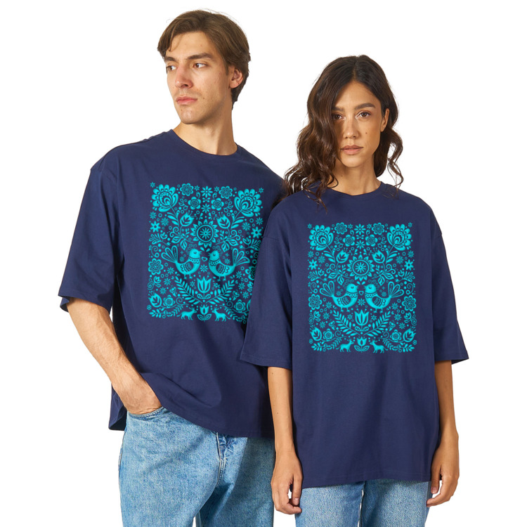 Футболка оверсайз «Русский стиль - обережный узор птицы счастья»