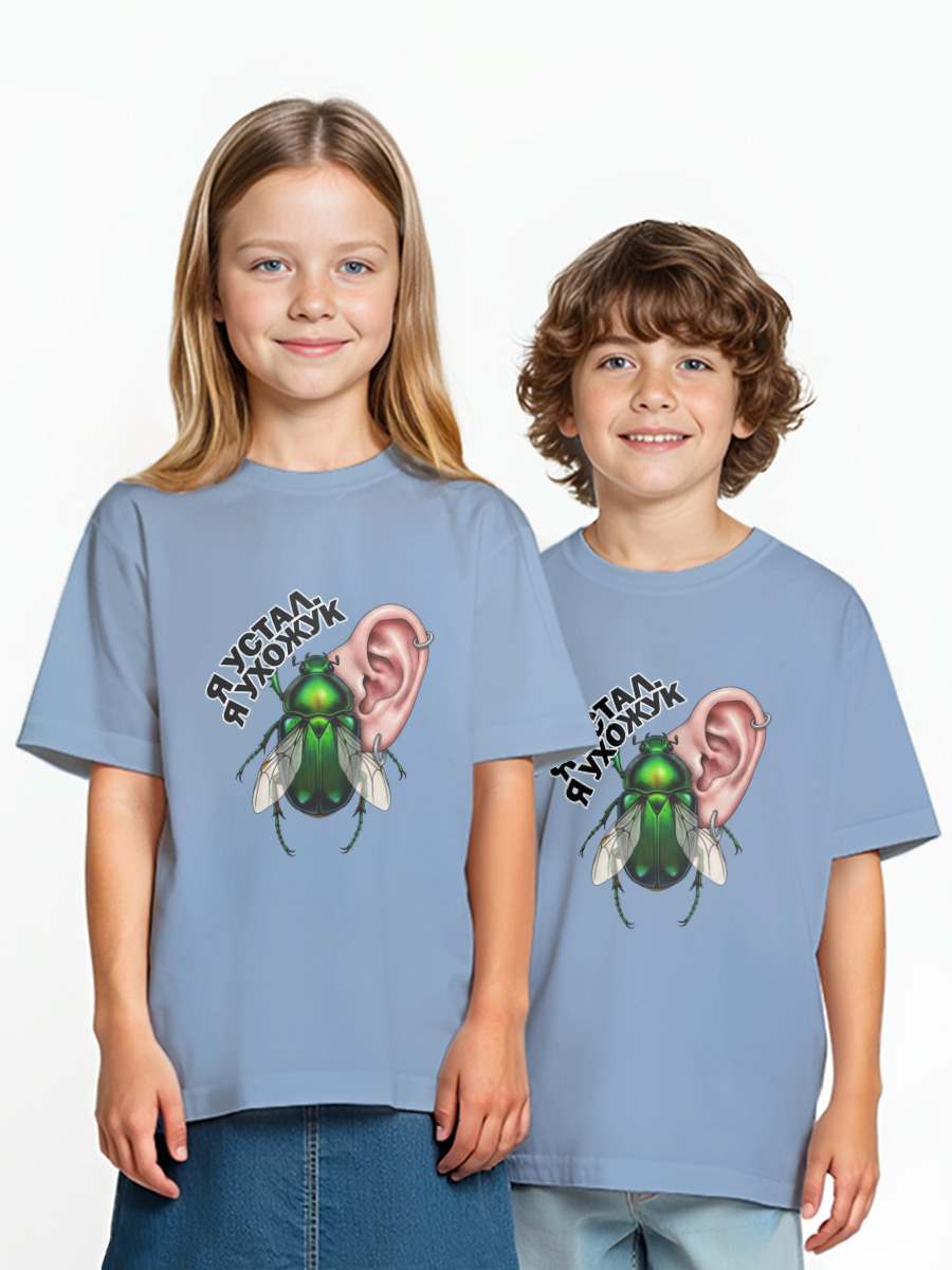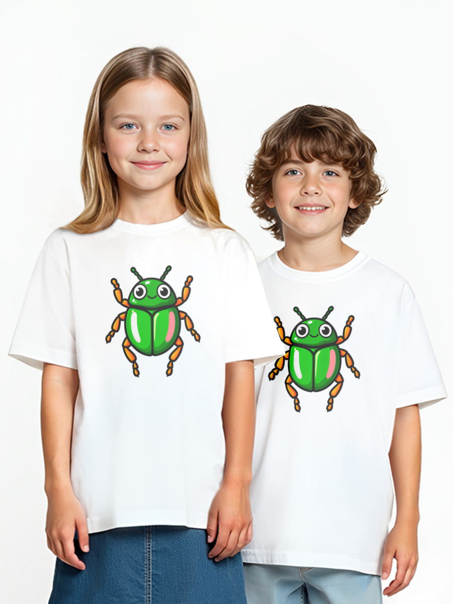 Детская оверсайз футболка «Улыбчивый зелёный жук»