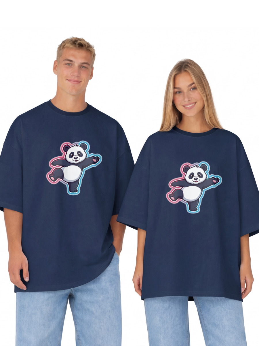 Футболка оверсайз «Неоновая панда диагональный баланс»