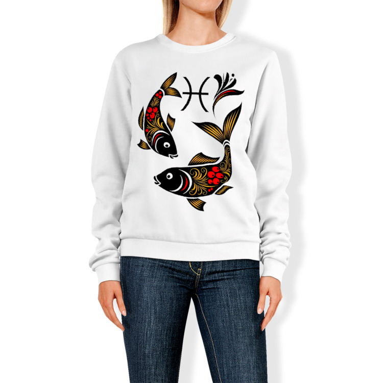 Женский свитшот «Знак зодиака рыбы в стиле хохломской росписи»