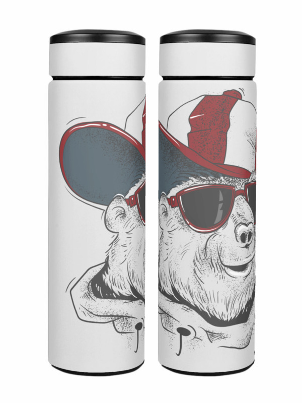 Термос «Крутой медведь в очках и кепке»