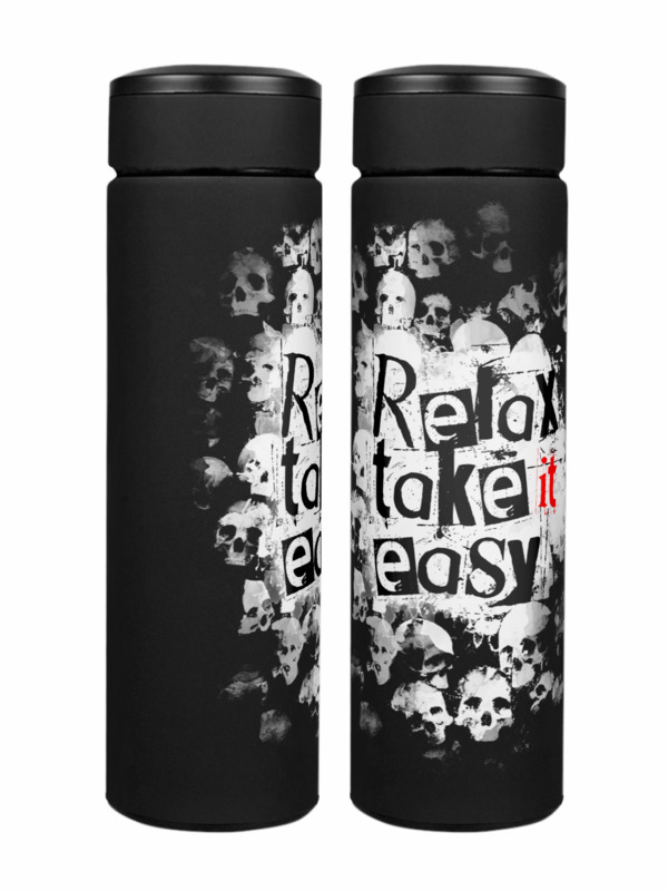 Термос «Relax - надпись, текст, череп, афоризмы, безразличие»